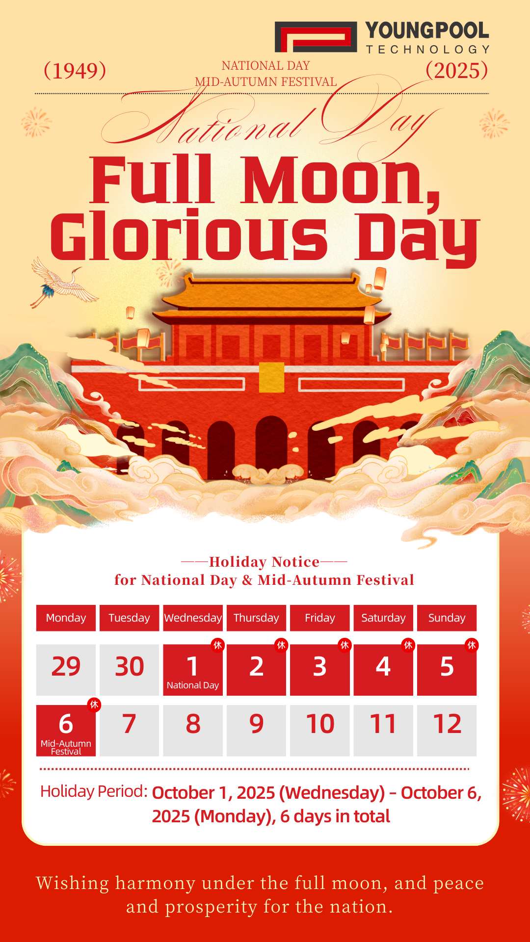 Youngpool Technology National Day & Mid-Autumn Festival Holiday Notice